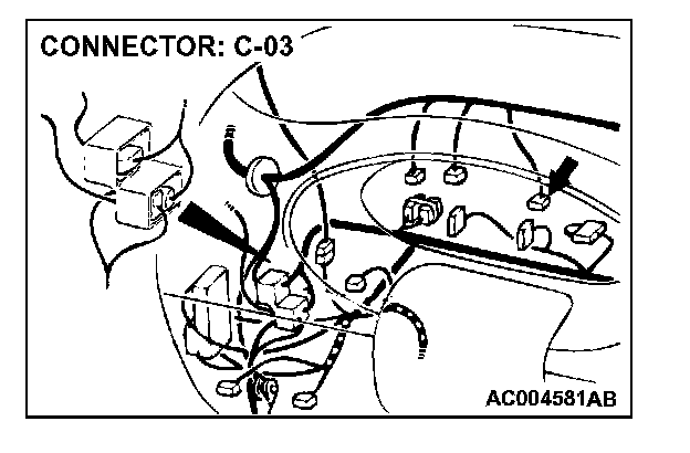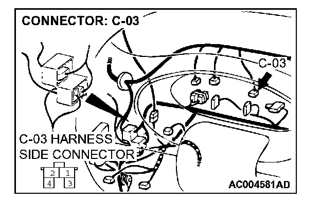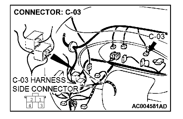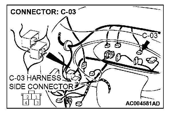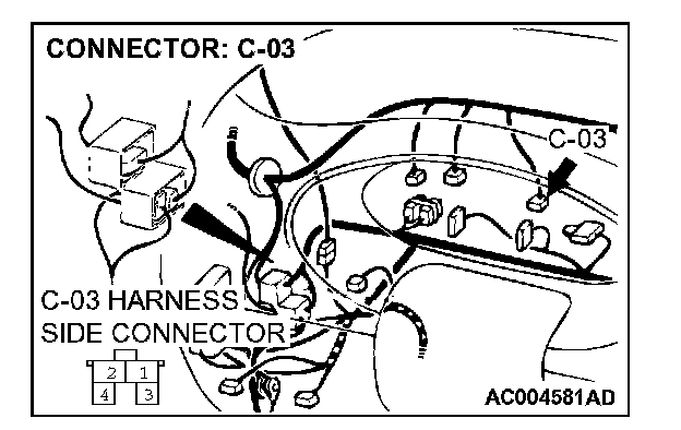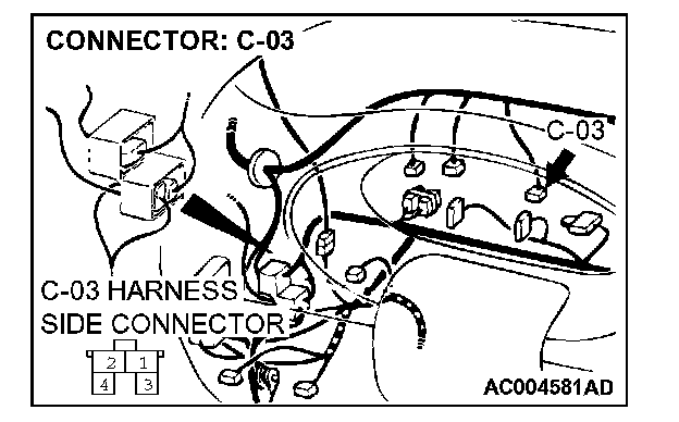 STEP 3. Check stoplight switch connector C-03 for loose, corroded or damaged terminals, or terminals pushed back in the connector.