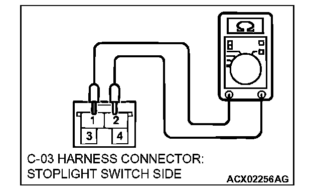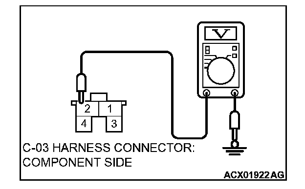2. Measure the voltage between stoplight switch connector C-03 terminal 2 and ground.