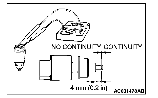 3. The stoplight switch is in good condition if the circuit is open when the plunger is pushed in to a depth of within 4 mm (0.2 inch) from the outer case edge surface, and if the resistance value is less than 2 ohms when it is released.