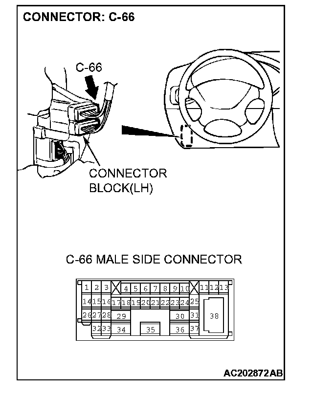 STEP 10. Check the harness wire between auto-cruise control-ECU connector C-52 terminal 4 and intermediate connector C-66 terminal 14 for damage.