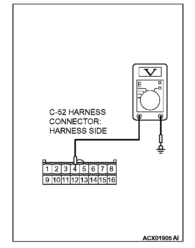 3. Measure the voltage between auto-cruise control-ECU connector C-52 terminal 4 and ground by backprobing.
