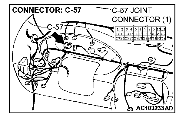 STEP 9. Check auto-cruise control-ECU connector C-52, joint connector (1) C-57 and intermediate connector C-66 for loose, corroded or damaged terminals, or terminals pushed back in the connector.