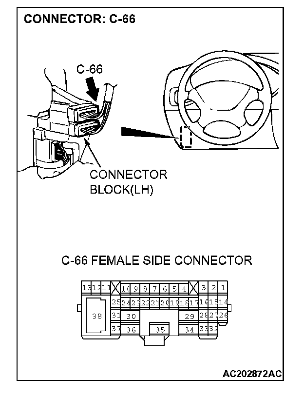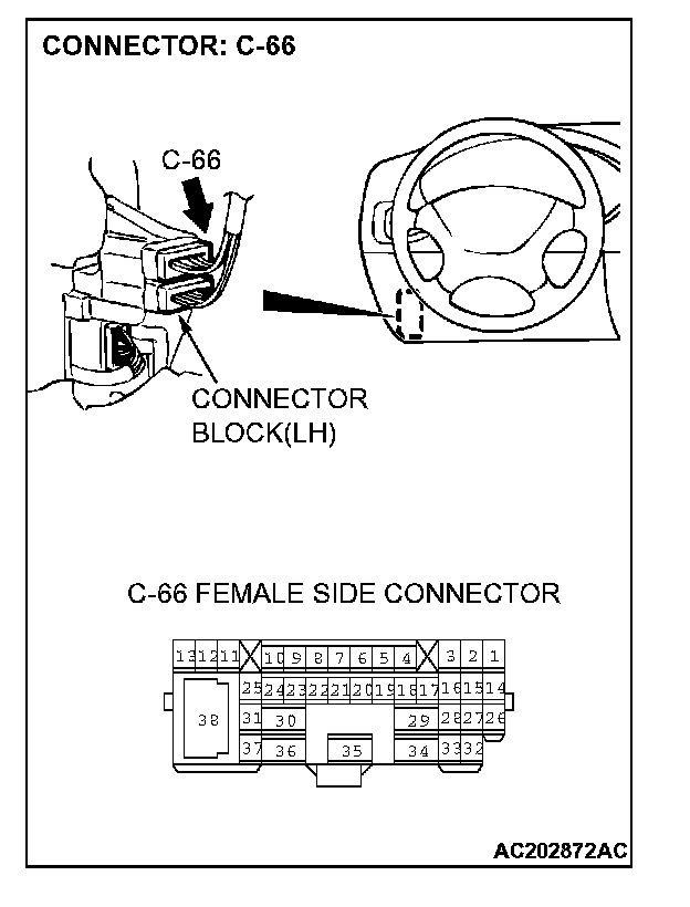 STEP 6. Check stoplight switch connector C-03 and intermediate connector C-66 for loose, corroded or damaged terminals, or terminals pushed back in the connector.