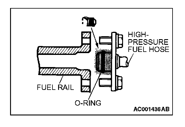 1. When connecting the high-pressure fuel hose to the fuel rail, apply a small amount of new engine oil to the O-ring and then insert the high-pressure fuel hose, being careful not to damage the O-ring.