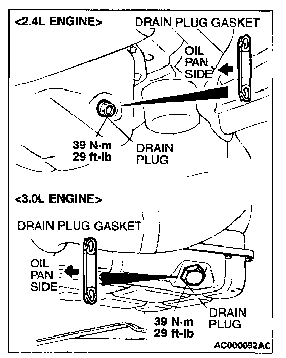 NOTE: Install the drain plug gasket so it faces in the direction shown in the illustration.