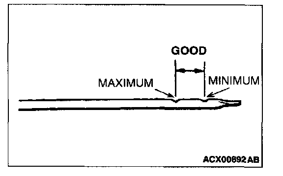6. Stop the engine and check to ensure that the engine oil level is within the level range indicated on the dip stick.