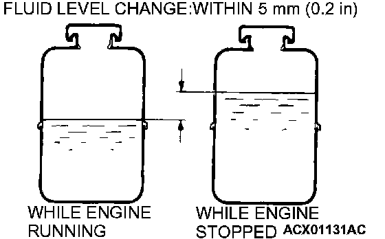 3. Check the fluid in the oil reservoir for foaming or milkiness. Check the difference of the fluid level when the engine is stopped, and while it is running. If the change of the fluid level is 5 mm (0.2 inch) or more, air bleeding should be done.