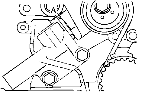 3. Loosen the center bolt of the tensioner pulley, then remove the timing belt.