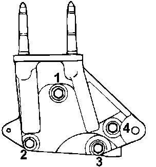 Tighten the right engine support bracket mounting bolts in the order shown in the illustration.