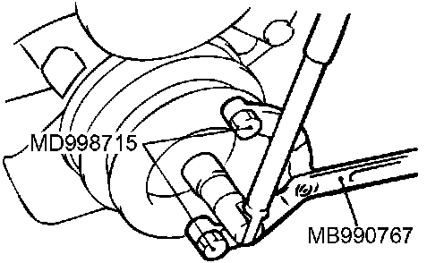 Use special tools MB990767 and MD998715 to remove the crankshaft pulley from the crankshaft.
