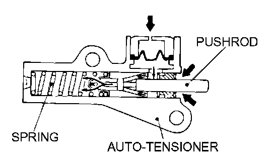 9. Wait for at least five minutes, then check that the auto tensioner pushrod extends within the standard value range.