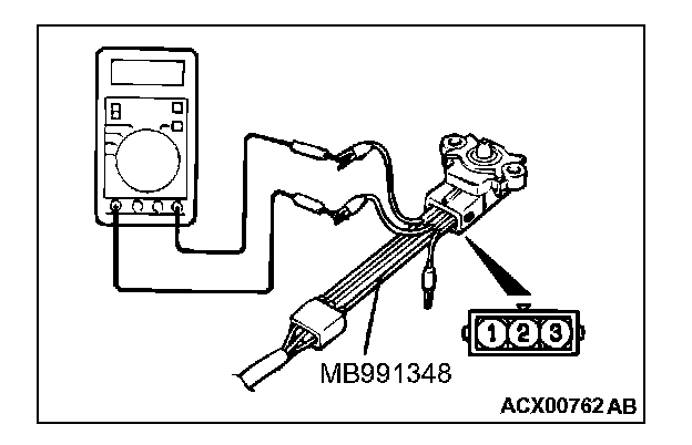 2. Turn the ignition switch to "ON" and measure the output voltage between terminals 2 and 3.