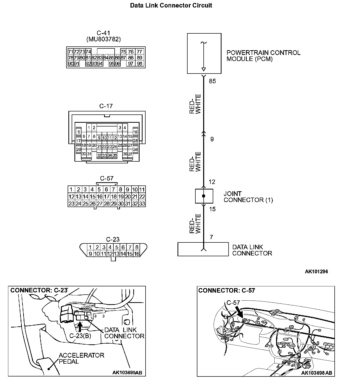 STEP 2. Check for open circuit, short circuit to ground and harness damage between data link connector C-23 (terminal No. 7) and PCM connector C-41 (terminal No. 85).