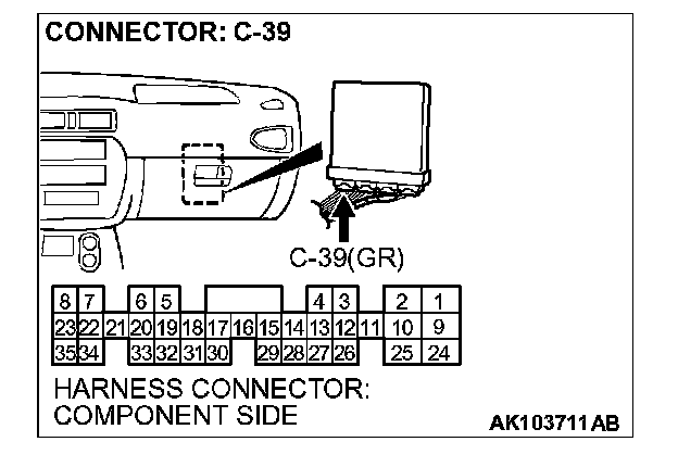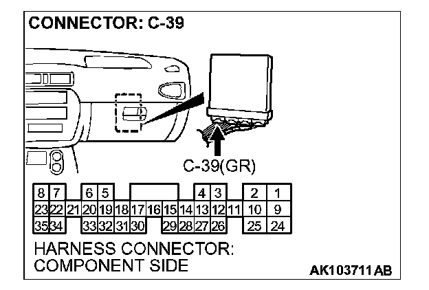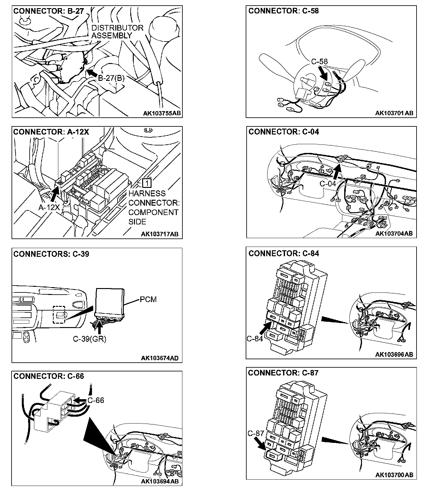 STEP 7. Check for open circuit between distributor connector B-27 (terminal No. 3) and PCM connector C-39 (terminal No. 11).