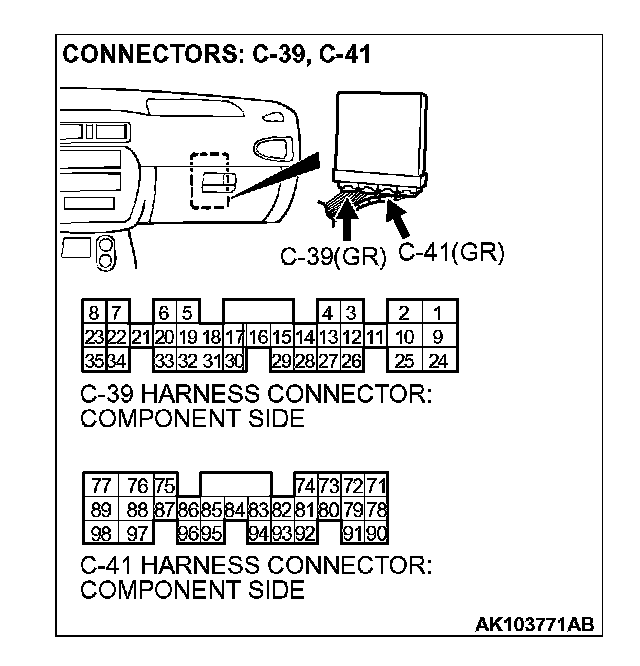 1. Disconnect the connectors C-41 and measure at the harness side.
