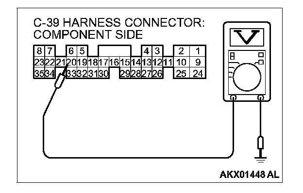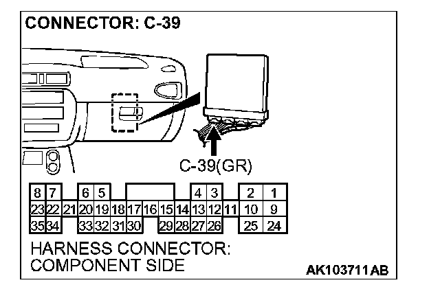 1. Disconnect the connector C-39 and measure at the harness side.