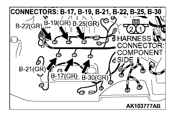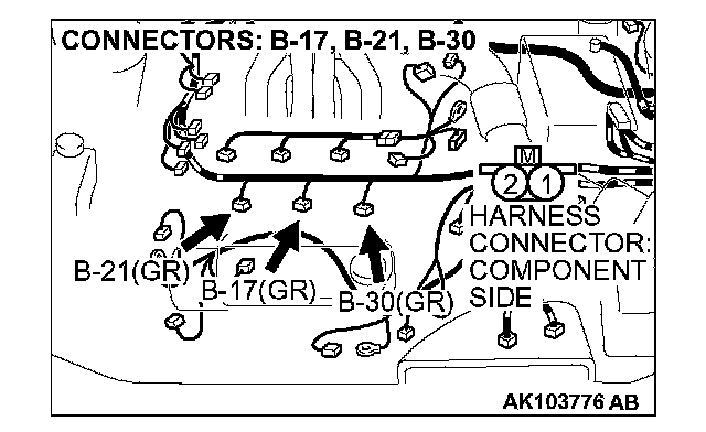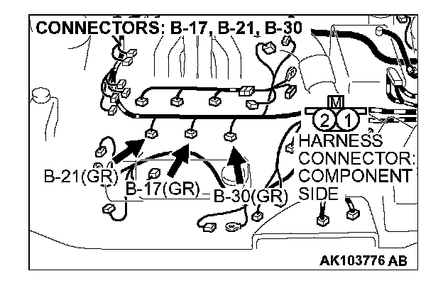 STEP 12. Check connectors B-17, B-21, B-30 at left bank injector for damage.