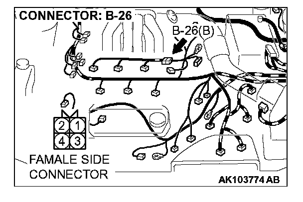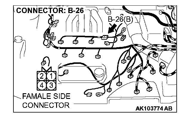STEP 11. Check connector B-26 at injector intermediate connector for damage.