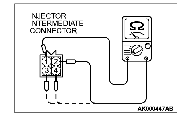b. Measure the resistance between terminal No. 1 and No. 3 when measuring No. 3 cylinder injector.