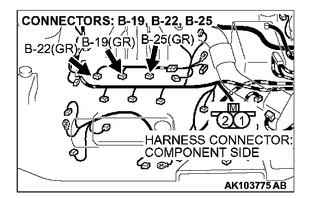 STEP 10. Check connectors B-19 or B-22 or B-25 at right bank injector for damage.