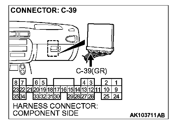 c. Check the harness wire between injector connector B-19 (terminal No. 2) and PCM connector C-39 (terminal No. 24) when checking No. 3 cylinder injector.