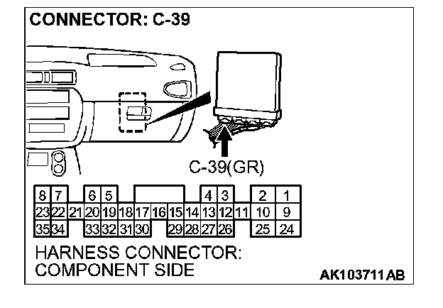 b. Check the harness wire between injector connector B-21 (terminal No. 2) and PCM connector C-39 (terminal No. 9) when checking No. 2 cylinder injector.