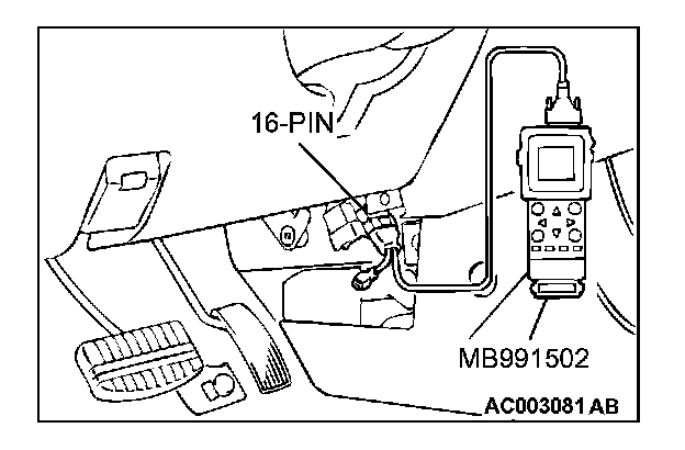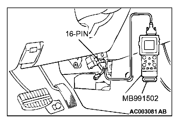 CAUTION: To prevent damage to scan tool MB991502, always turn the ignition switch is to the "LOCK" (OFF) position before connecting or disconnecting scan tool MB991502.