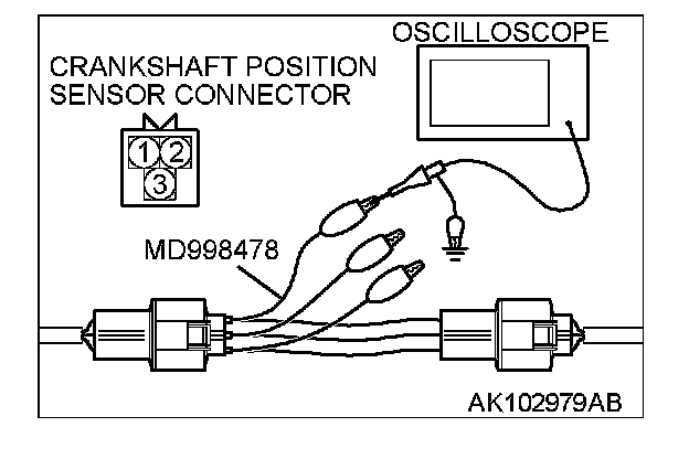 4. Connect the oscilloscope probe to crankshaft position sensor connector terminal No. 2 (black clip of special tool).