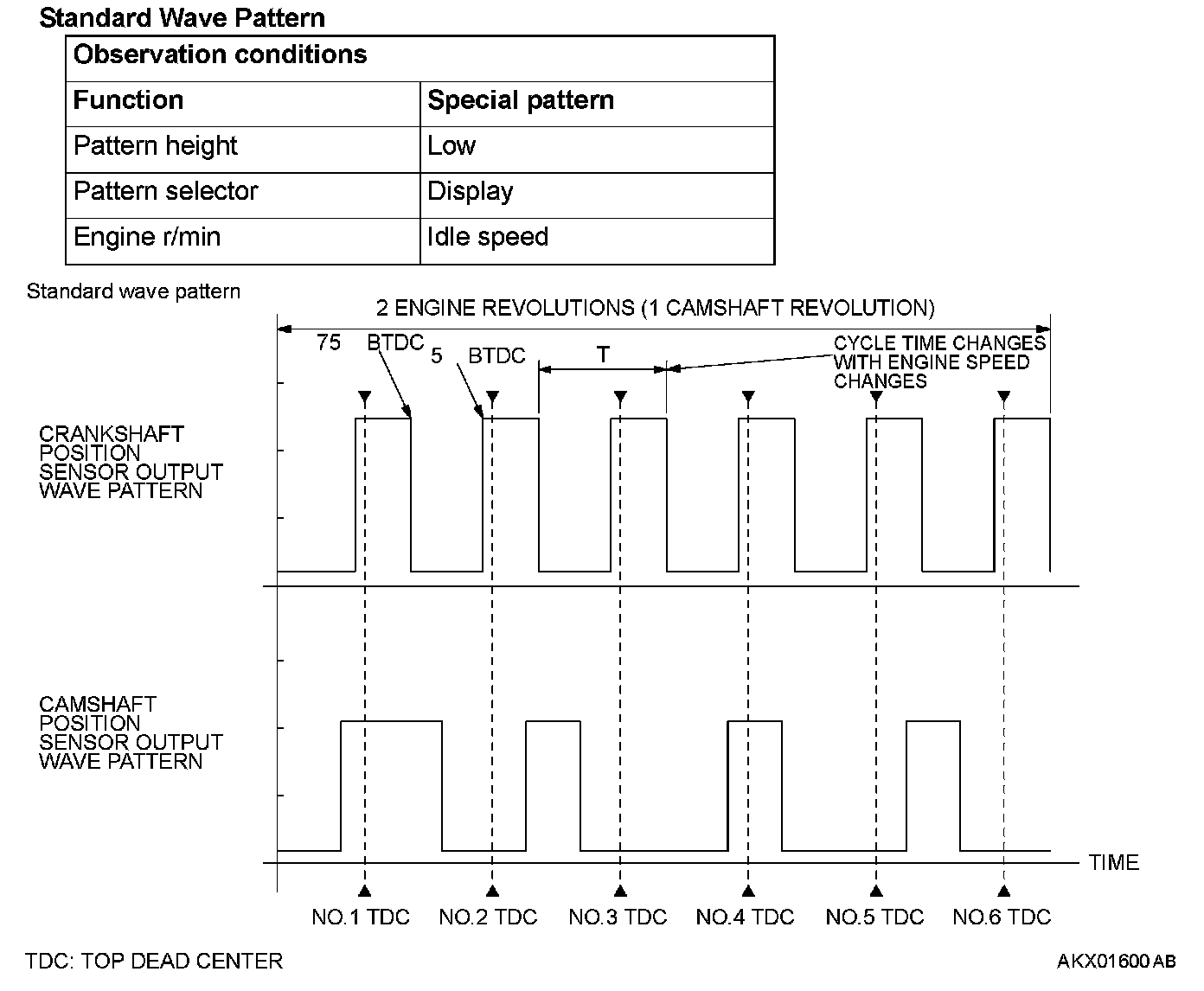 1. Check that cycle time T becomes shorter when the engine speed increased.