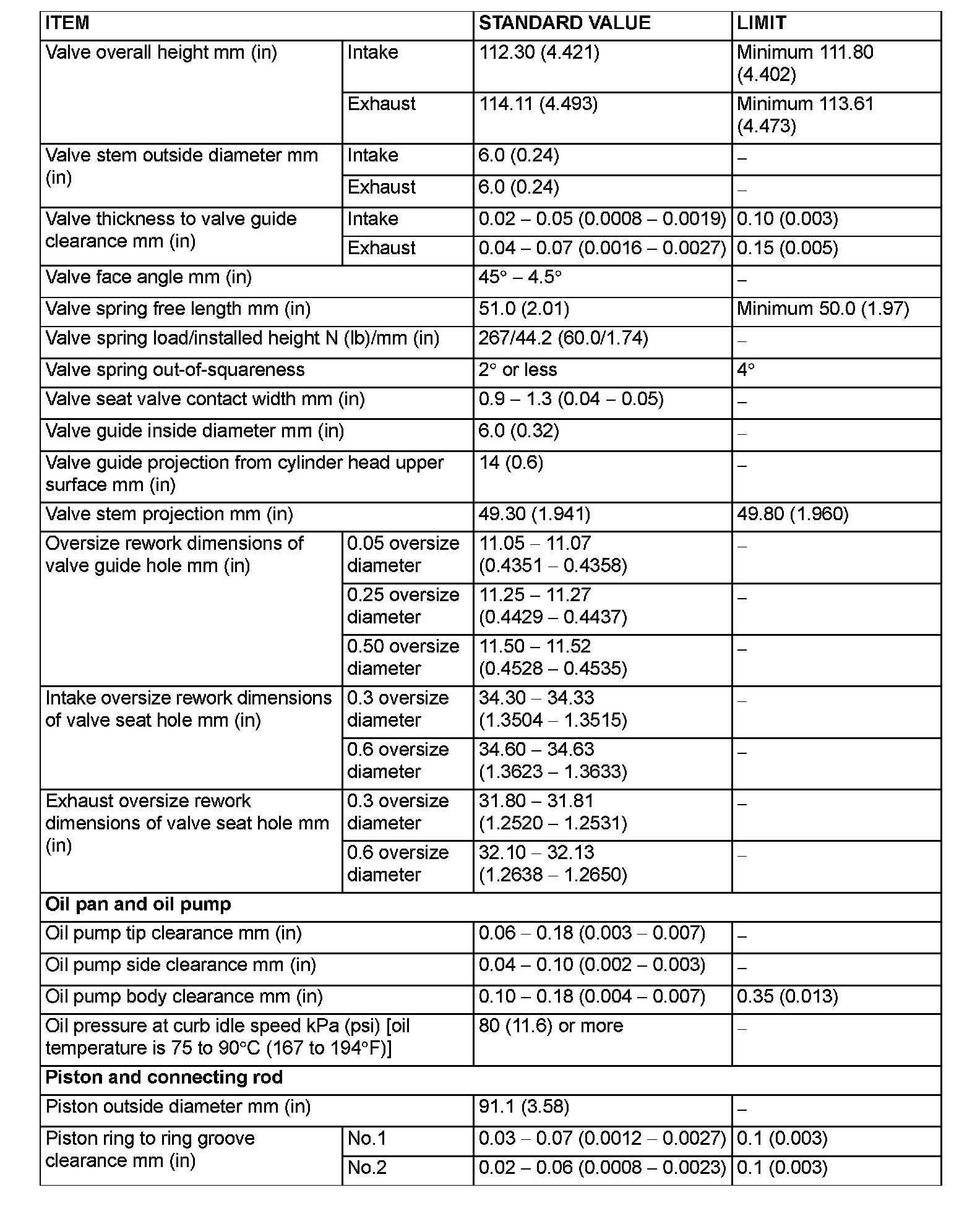 Engine-Overhaul Specifications