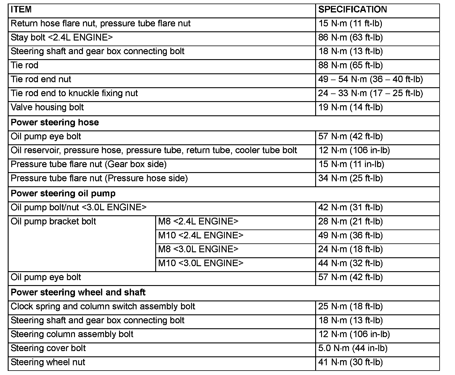 Power Steering Tightening Specifications