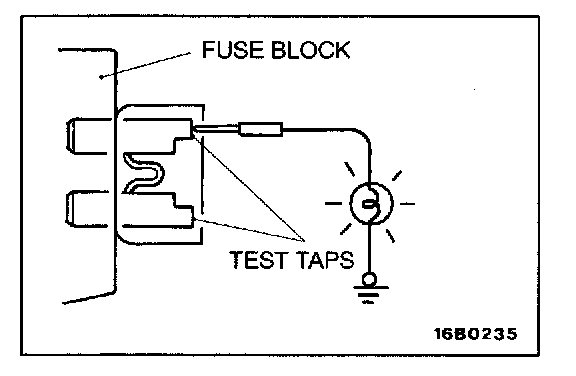 A blade type fuse has test taps provided to allow checking of the fuse itself without removing it from the fuse block. The fuse is okay it the test light comes on when its one lead is connected to the test taps (one at a time) and the other lead is grounded. (Change the ignition switch position adequately so that the fuse circuit becomes live.)