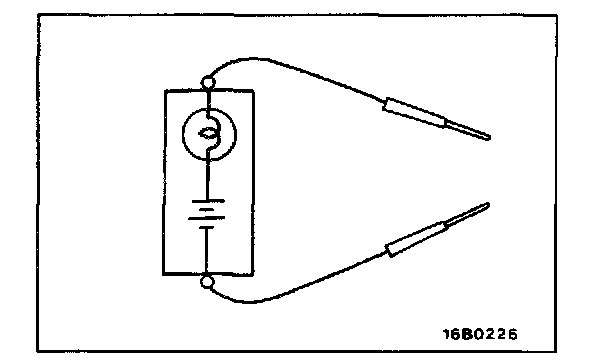 A test light consists of a 12 V bulb and lead wires. It is used to check voltages or short circuits.