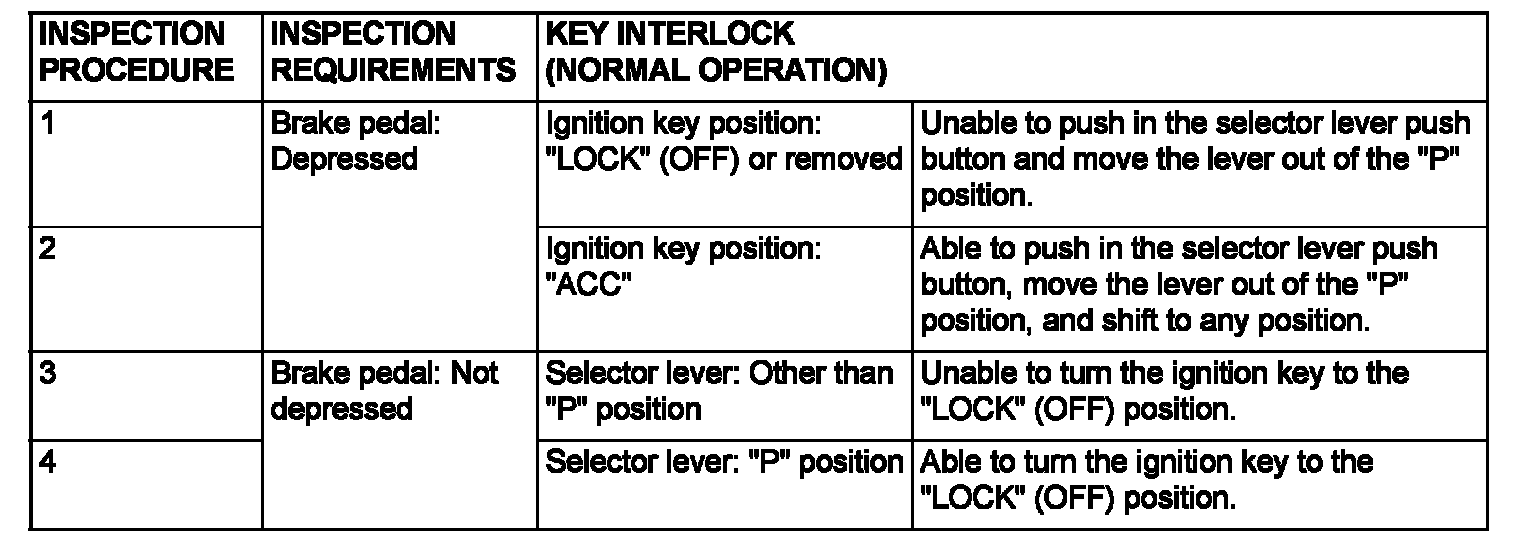 KEY INTERLOCK MECHANISM CHECK1. Perform the following inspection.