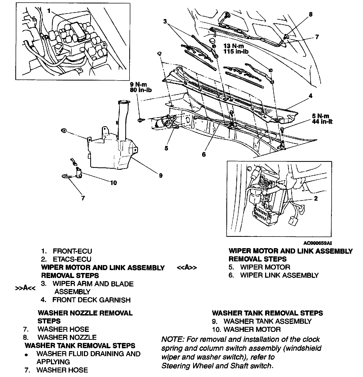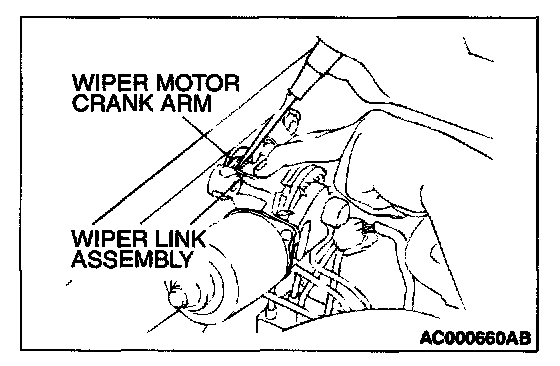 CAUTION: Auto-stop angle is preadjusted at the factory. Therefore do not remove the crank arm from the wiper motor unless necessary. Should It be removed, mark the crank arm and wiper motor.