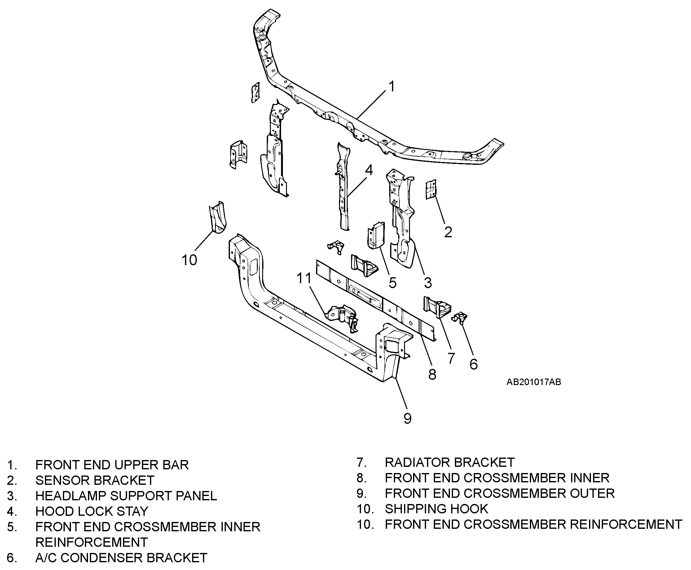 By adopting a steel sheet with variable thickness for the front end crossmember outer the steel sheet thickness on the right side of the vehicle has been increased to improve safety in collision and body rigidity.