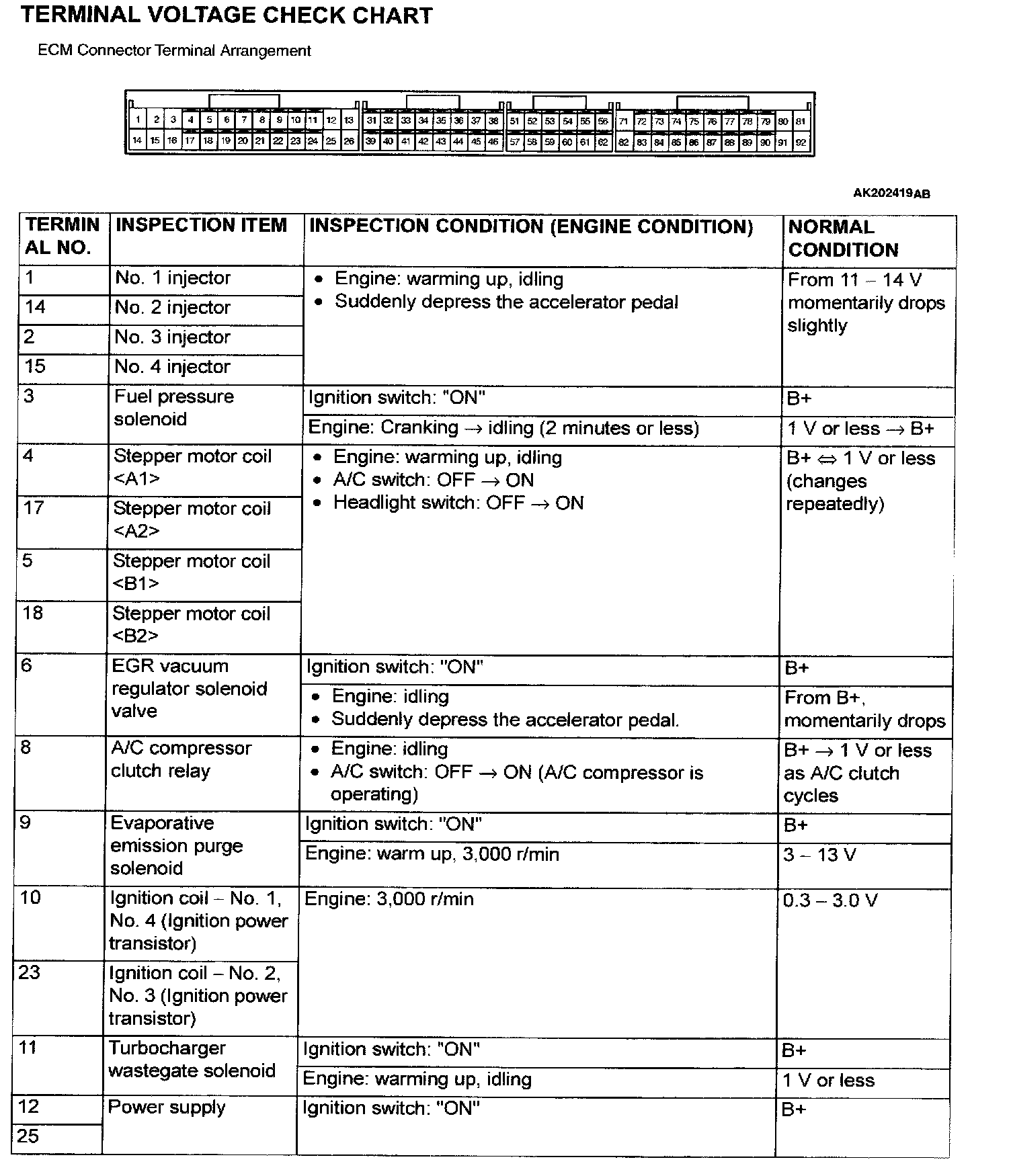 ECM Connector Terminal Arrangement Part 1: