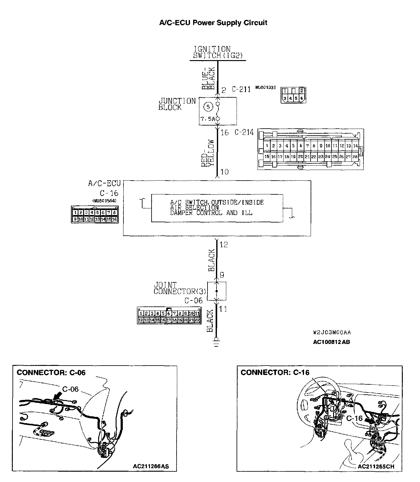 Malfunction of the A/C-ECU Power Supply System.A/C-ECU Power Supply Circuit Part 1: