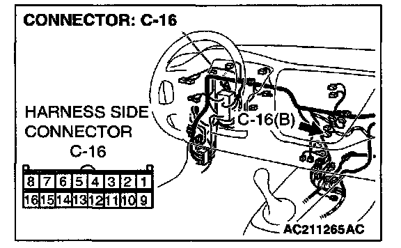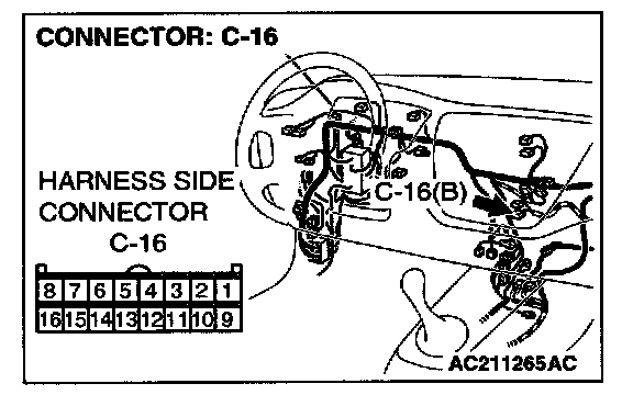 STEP 2. Check A/C-ECU connector C-16 for loose, corroded or damaged terminals, or terminals pushed back in the connector.