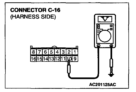STEP 1. Measure the voltage at A/C-ECU connector C-16.