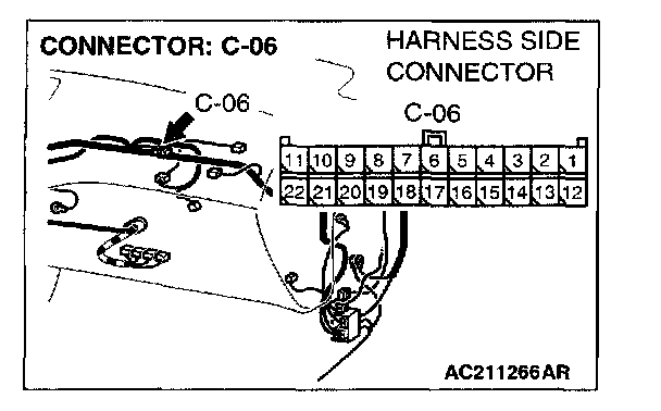NOTE: Also check joint connector 3. connectors C-06 for loose, corroded, or damaged terminals, or terminals pushed back in the connector. If joint connector 3. connectors C-06 is damaged, repair or replace the connector as described in Harness Connector Inspection.