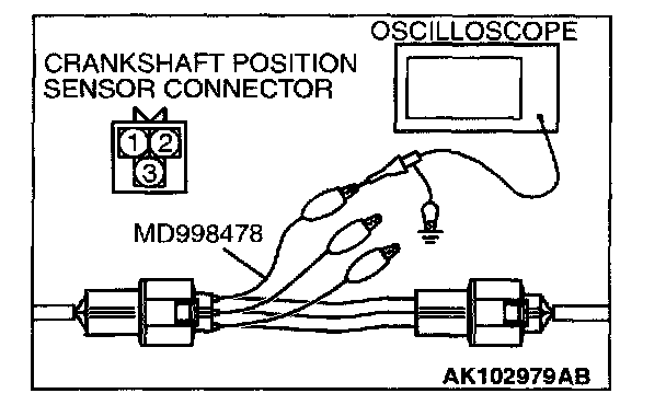 3. Disconnect the crankshaft position sensor connector, and connect the test harness special tool (MD998478) in between.