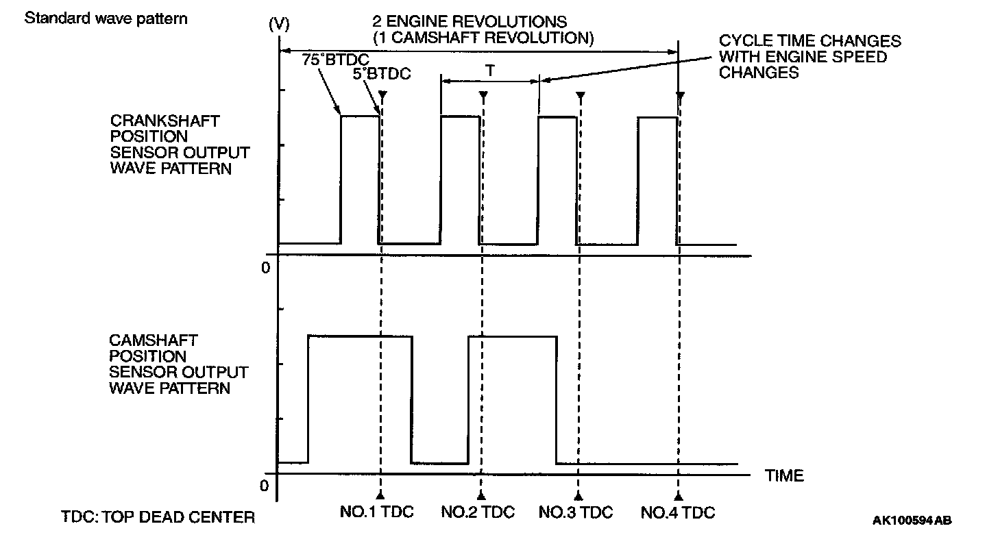 - Rectangular wave pattern is output even when the engine is not started.