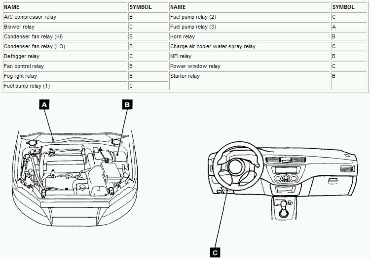 Main Relay (Computer/Fuel System): Locations