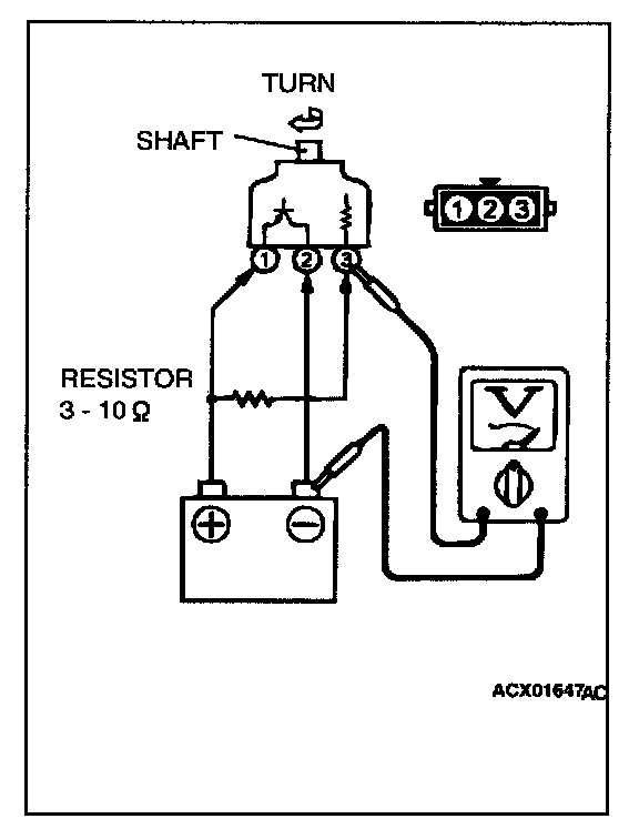 2. Turn the shaft of the vehicle speed sensor and check that there is voltage between terminals 2 - 3.(1 turn 4 pulses)