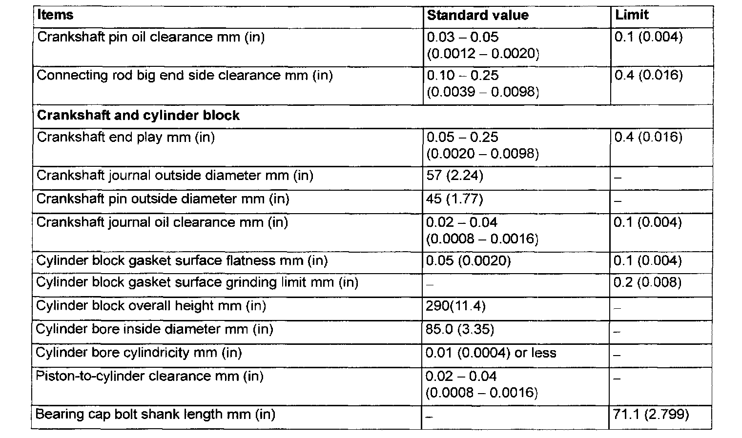 Engine-Overhaul Specifications