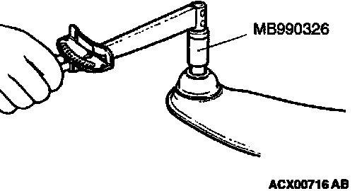 1. After shaking the trailing arm ball joint stud several times, use special tool MB990326 to measure the turning torque of the trailing arm ball joint.