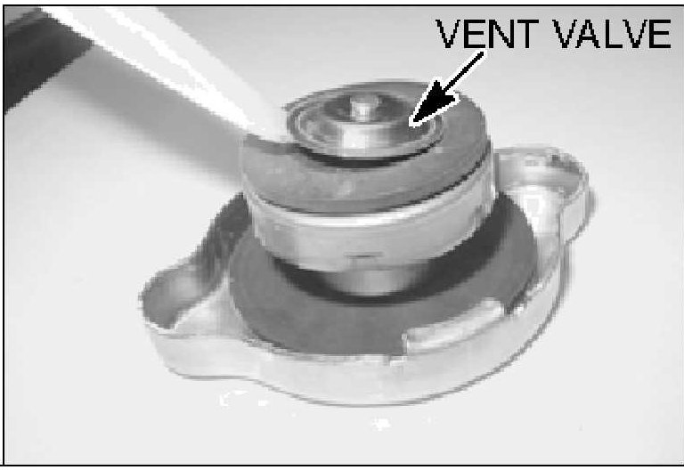If an upper or lower radiator hose is collapsed, check the cap's vent valve by attempting to lift it. If the vent valve is stuck, replace the radiator cap (part number MR481252).