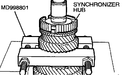 1. Using special tool MD998801, support the 4th speed gear, and then set them on the press.
