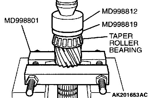 Using special tools MD998812, MD998819 and MD998364, press install the taper roller bearing.